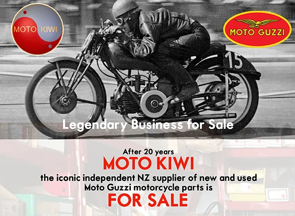 The Moto Guzzi parts import business - Moto Kiwi is for sale. It is a ‘grass roots’ specialist enterprise created to keep Moto Guzzi motorcycles on the road. It is comprised of an extensive selection of new and used Moto Guzzi motorbike parts, and more. It has a solid foundation, loyal customer-base with excellent supplier relationships.